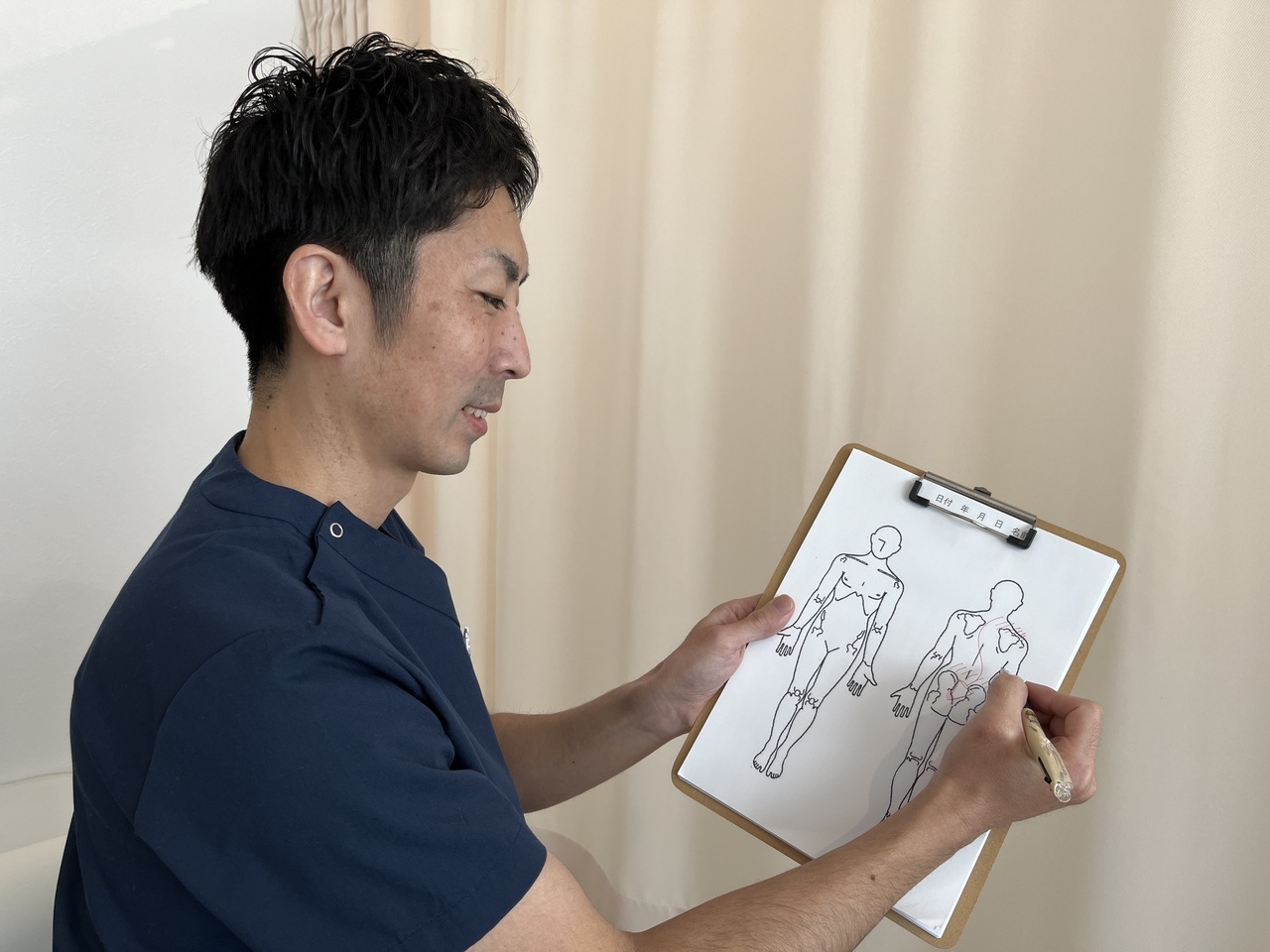 現在のお体の状態や痛みの原因など、今後の施術方針についてご説明します。