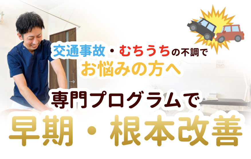 事故後は早めの施術で、早期改善を目指しましょう。